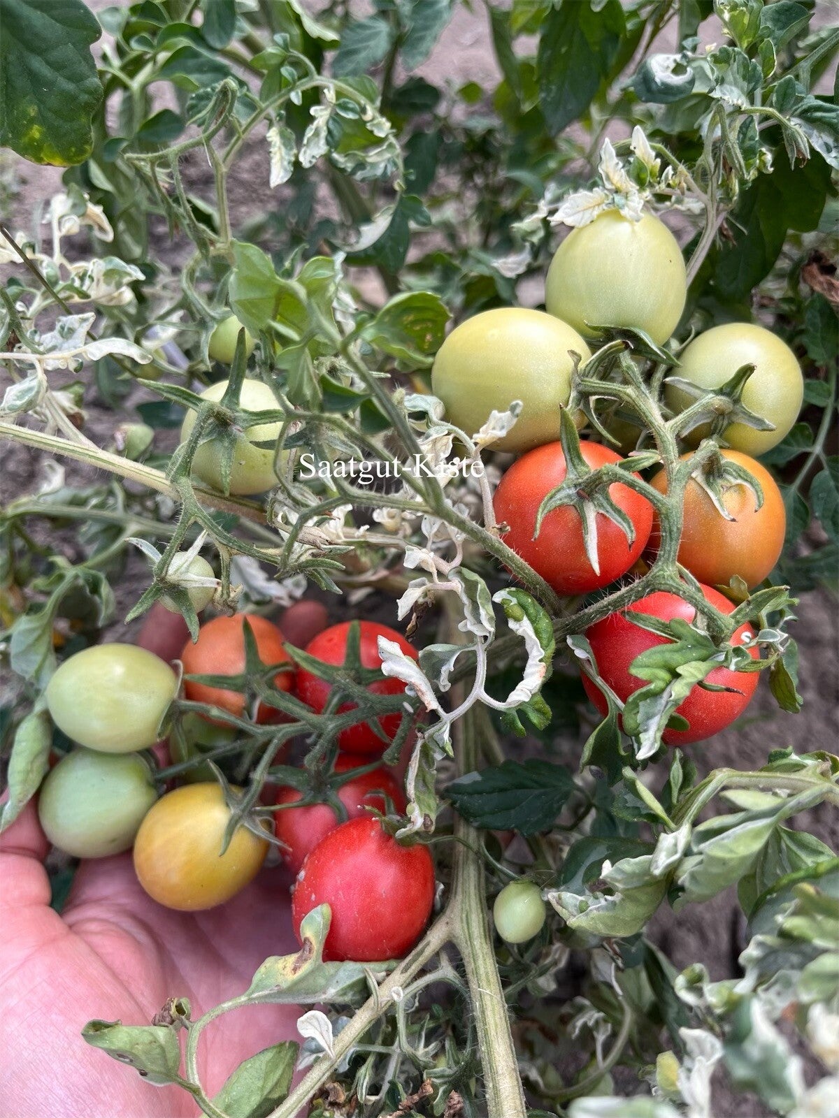 Shimofuri gehört zu den mittelfrühreifenden Sorten und trägt wunderschönes panaschiertes Laub. Die Wuchshöhe beträgt 80 cm und ist somit perfekt für den Anbau in einem Kübel auf dem Balkon geeignet. Die roten reifen Tomaten haben eine zarte Schale und schmecken fruchtig-süß. Die Früchte haben ein Gewicht von 20-30 Gramm.