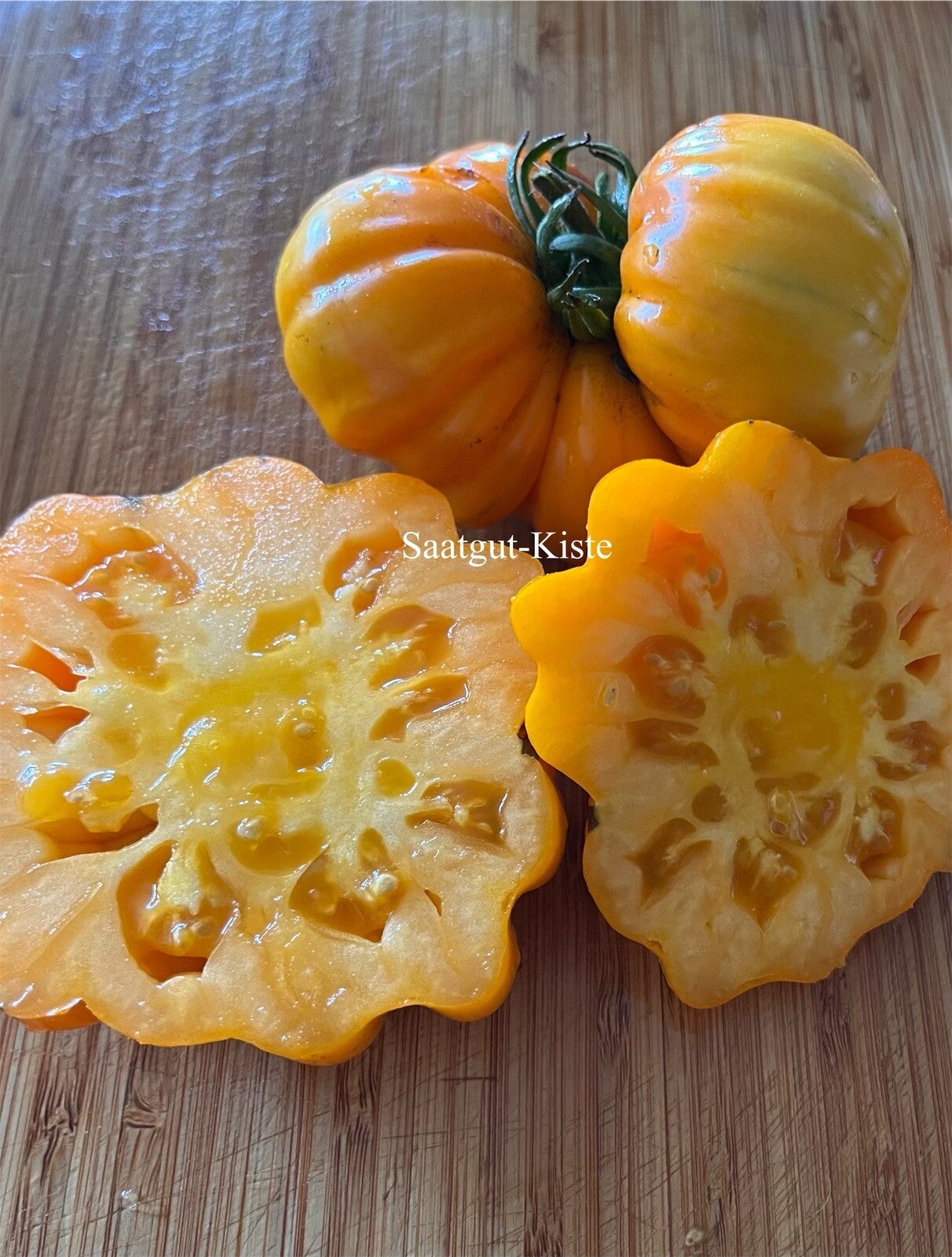 Diese Sorte gehört zu spätreifenden Sorten und trägt bis zu 400 Gramm schwere Tomaten. Diese sind gerippt und haben einen milden Geschmack. Die Pflanze kann eine Wuchshöhe von 1,80 Meter erreichen.