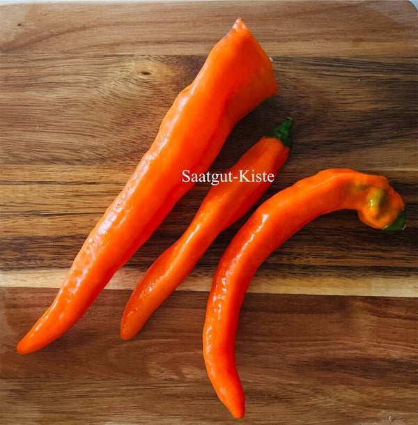 Kyrah kann eine Wuchshöhe von bis zu 1,20 Meter erreichen. Die Spitzpaprika reifen hellorange ab und haben einen süßlichen Geschmack. Die Schoten können eine Länge von 20-30 cm erreichen und sind nach der Ernte sehr lange haltbar. An einem sonnigen und geschützten Standort kann diese Sorte auch im Freiland angebaut werden. Diese Sorte kann auch im Freiland angebaut werden.