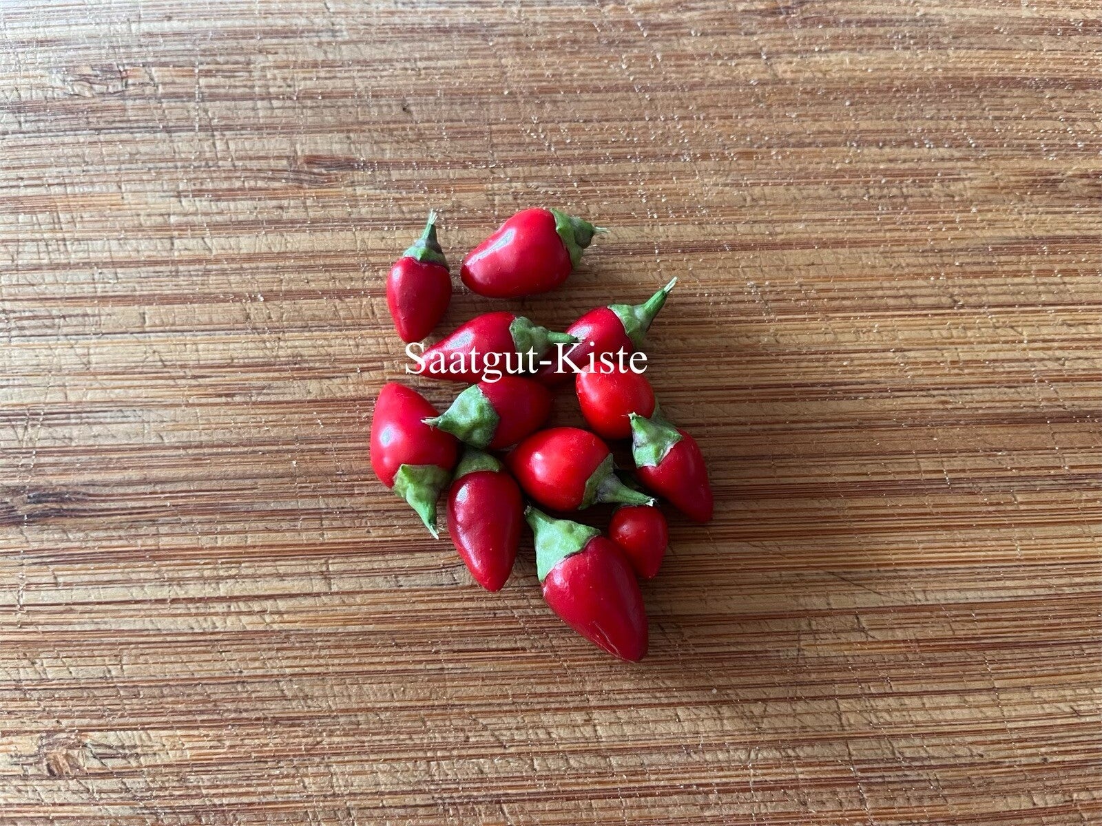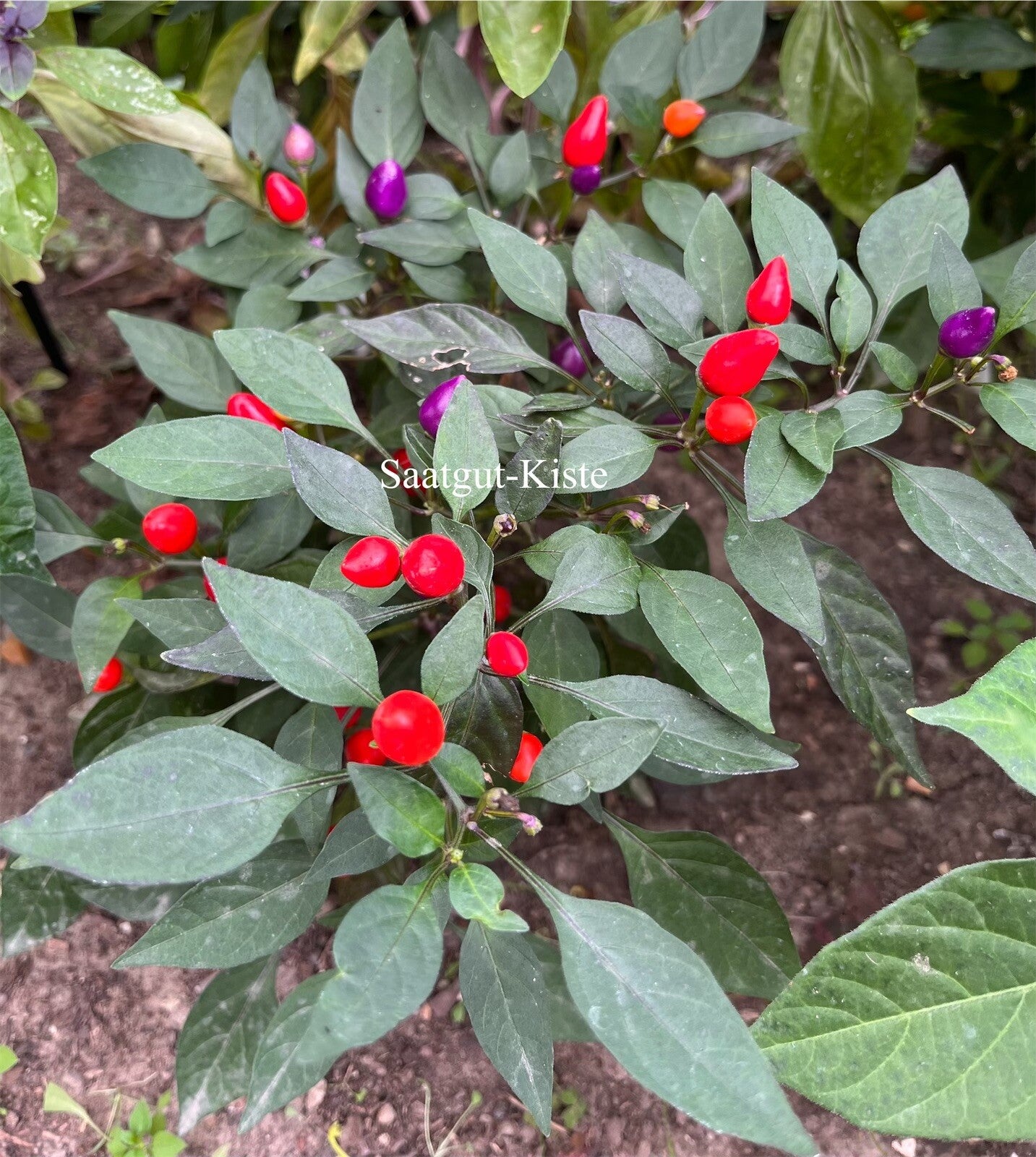 Aurora hat einen buschigen Wuchs und wird gerade mal 30-40 cm hoch. Perfekt für den Anbau in einem Kübel. Die Fruchtgröße beträgt nur 2 cm. Es ist eine wirklich dekorative Chilisorte mit einer feurigen Schärfe.