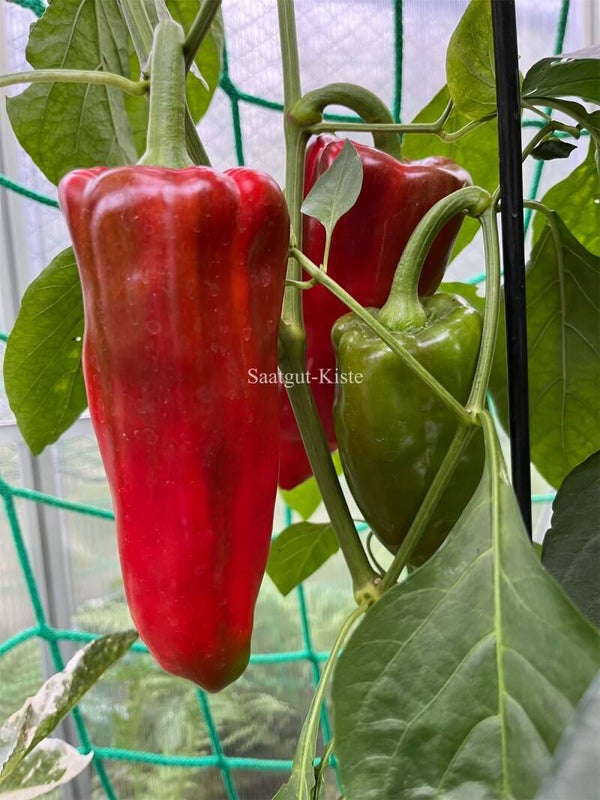 Diese Sorte trägt sehr große rote Paprika mit ein Gewicht von 180-200 g, die nach ca. 100 Tagenreif sind. Das Fruchtfleisch ist saftig, süß und hat ein angenehmes Aroma.