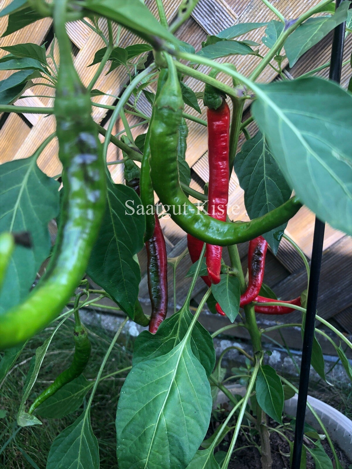 Diese Chili erreicht eine Wuchshöhe von ca. 60 - 70 cm und somit gut für den Anbau im Kübel geeignet. Sie ist sehr reichtragend und die Reifezeit beträgt ca. 80 Tage. Die Schoten haben einen mild-aromatischen Geschmack und reifen von Grün nach Rot ab. Grün werden diese gern zum Einlegen genommen. Sie eignen sich aber auch gut zum Trocknen, Füllen, Braten und für den frischen Verzehr.